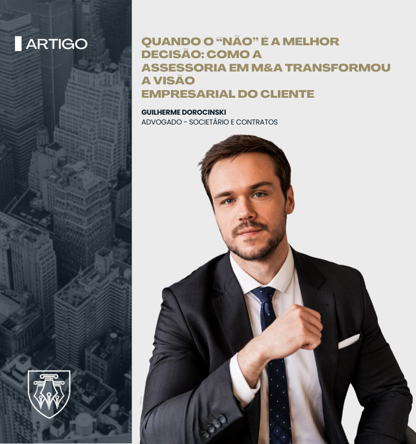 Tags Direito Societário Quando o “não” é a melhor decisão: como a assessoria em M&A transformou a visão empresarial do cliente passinato 19/09/2025 Por Guilherme Dorocinski